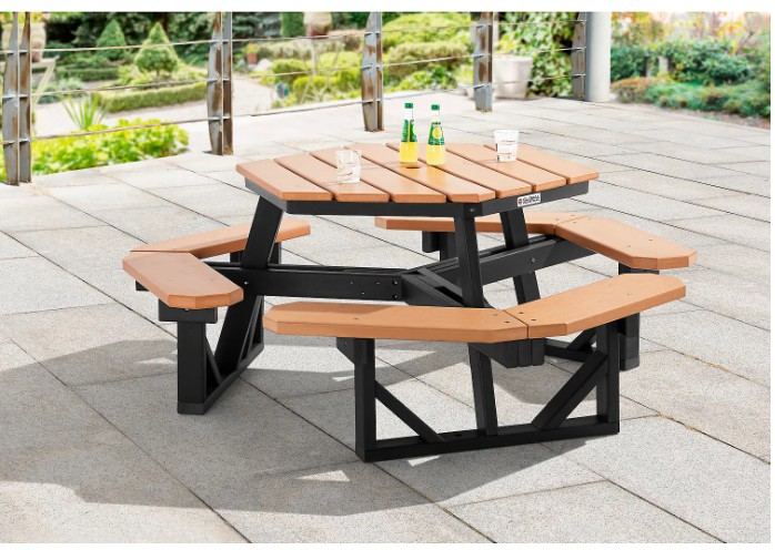 Global Industrial 46'' Hexagon Picnic Table, Recycled Plastic, Cedar